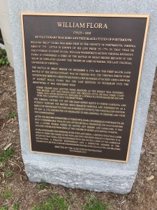 Bill really liked this landmark about William Flora who took fire from a whole platoon while firing his musket to hold off them advancing during the Battle of Great Bridge. What’s in a name.