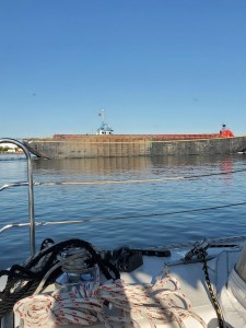 Busy day coming out of Norfolk harbor. When these barges and ships go by, we realize how tiny our boat is – in comparison.