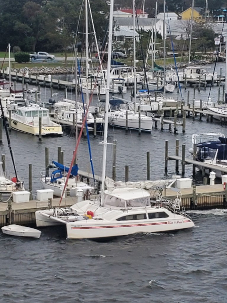 ICW Mile 182 – Happy Veteran’s Day! A nice day on the Oriental Marina dock to clean up, restock and do some boat maintenance. I got a nice bike ride and walk in to explore Oriental. Early afternoon, the winds started to picked up as we started to see Hurricane Eta coming our way. We had dinner at some good friends of ours, Butch and Vicki. They live in Oriental. We were joined by their friends who also just came in to Oriental by boat and actually came from Herrington Harbour, our old stomping grounds. So Bill and they knew alot of the same folks. Lots of very funny boat yarns from the group. Really nice evening. Going to be rocky night on the boat tonight, so glad we are tied up well.