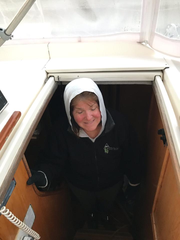ICW Mile Marker 315 – Today started off with a cold morning and frost on the boat, so time to move farther south. So we were on the move again. First thing was to make it past where the 3 boats that got stuck on shoal at “99A”. With our local knowledge Bill learned at the Harbour Village Marina, we knew we had to stay close to the boat with the 4 400 engines on the dock way to the starboard side. It put us way off of the GPS track so hard to do, but we did it and made it pass with 7 feet of water. Then onto the Snow Cut Swing Bridge with Bill fighting the currents until the bridge open. Then we were going to have to wait over an over at the Wrightsville Swing Bridge since they only open on the hour. But luck was with us again. A tugboat towing a vessel taking on water had emergency call to the bridge attendant and opened 40 minute early and the attendant let us go right behind them. Score. So continuing on. A beautiful day on the ICW but fighting strong currents all day long. In the Cape Fear River near Wilmington, we passed the largest barge we have seen with 3 tugboats pulling it. Then we ended in nice marina in Oak Island near Southport. Our good friends Sally and Rick picked us up for dinner and spend the night to catch up with them and John and Bonnie. We had drinks at Provisions for the sunset and watched the boats go by and then dinner at Frying Pan. Long but another wonderful day on the ICW.