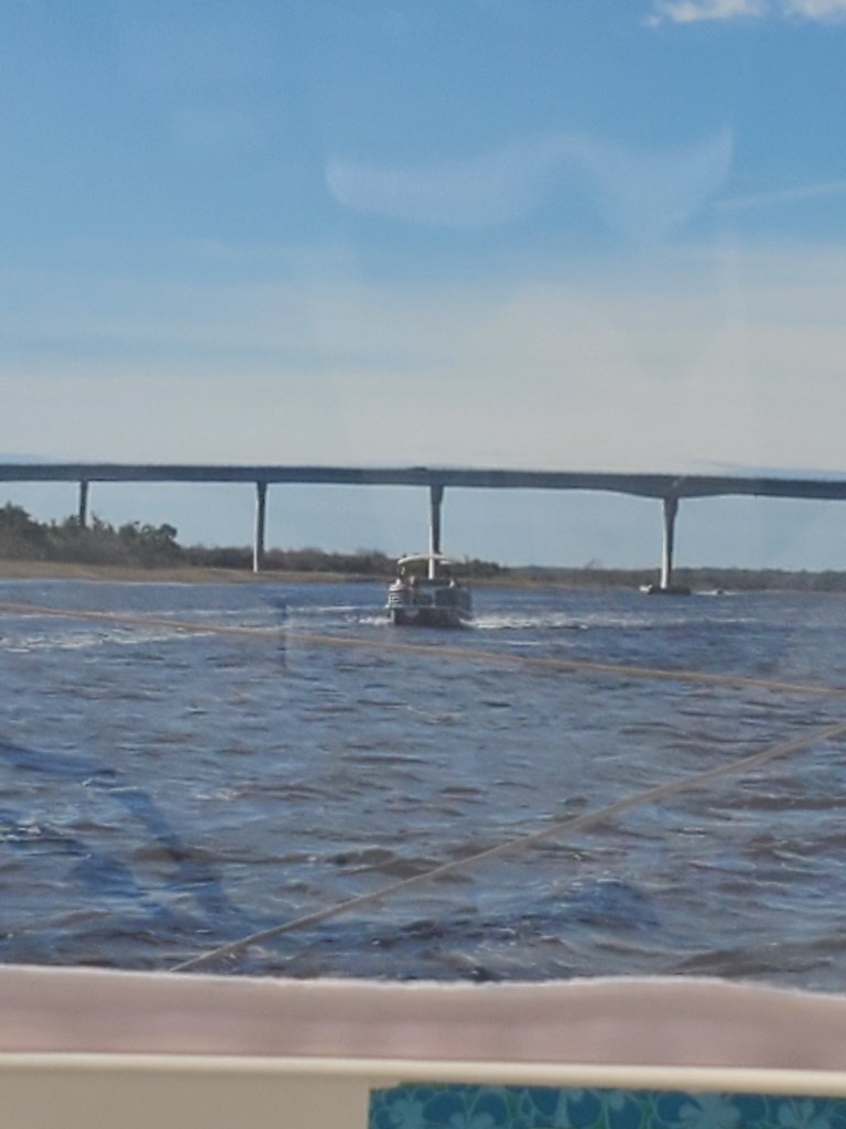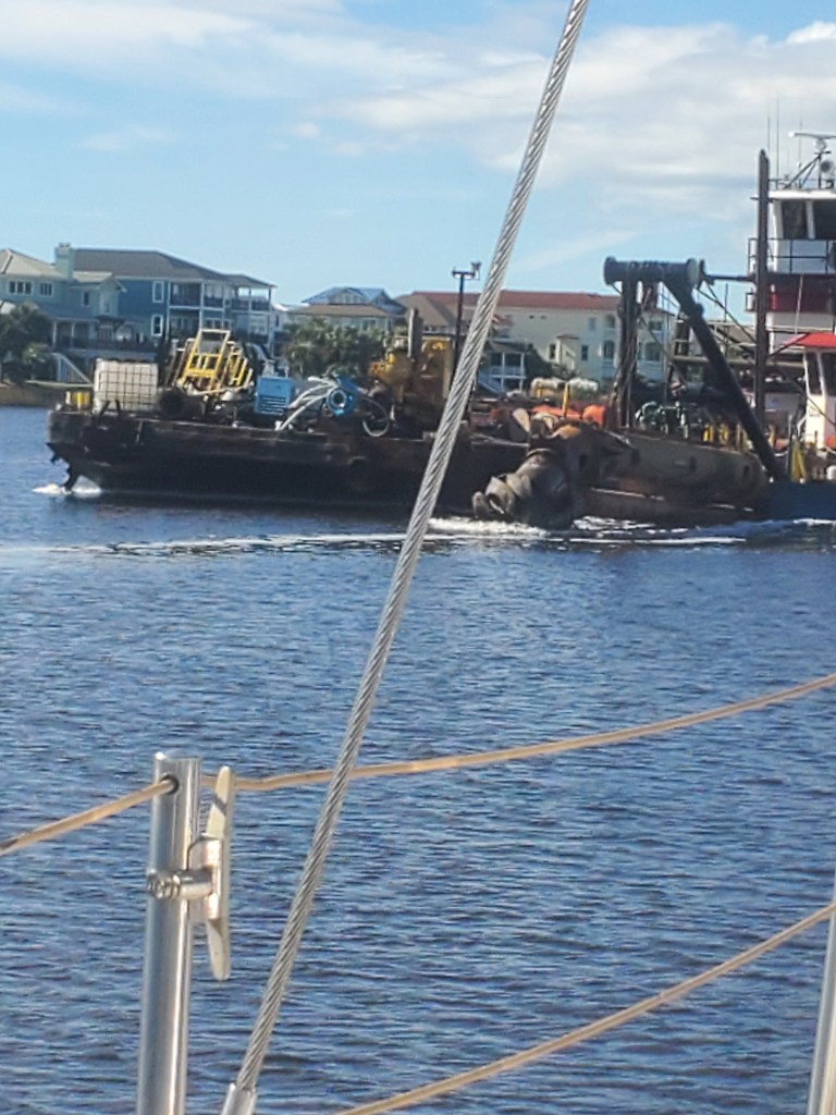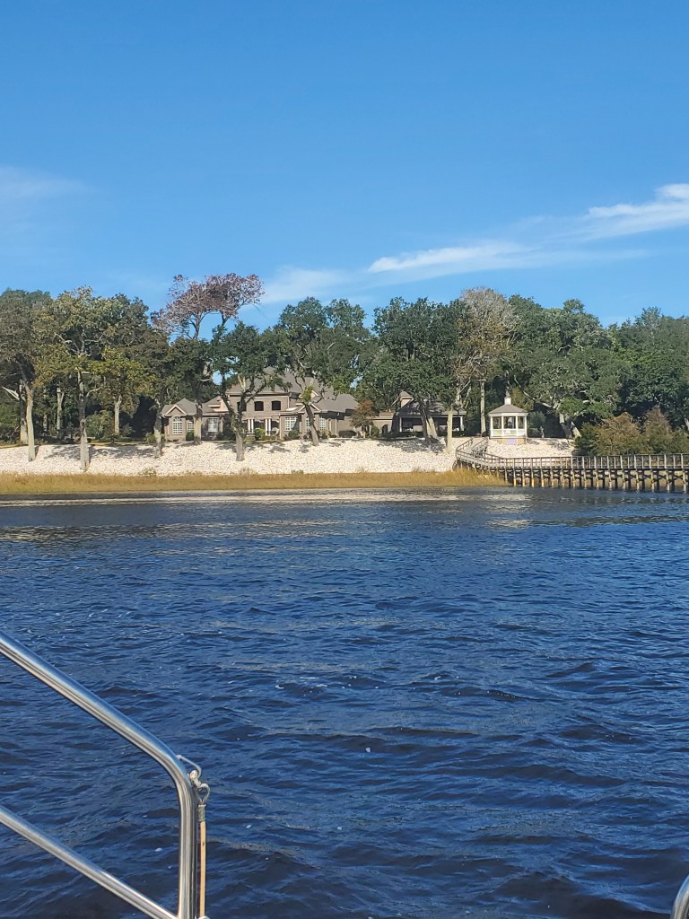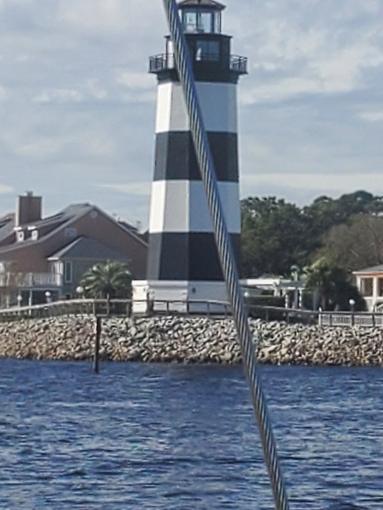 ICW Mile Marker 346 – Late night w Cathy and Craig catching up. We had a great night of sleep, leaving Holden Beach a little late and heading to Little River Inlet Myrtle Beach, SC. Currents, wakes, shoals, barges, bridges & beautiful houses today – just a typical day on the ICW. Lol. Come into our new port with a lighthouse at the entrance. It feels right. We will be here for at least a month to go home for Thanksgiving. This boat was right in front of the sunset that says it – Gratitude – that is what we are feeling. What a wonderful 450 miles to get to this point. We are going to spend Thanksgiving with family and then come back here for 2 weeks to meet up with friends, play golf and go to the beach. We are going to make friends with our neighbors Tiki Pontoon. Lol. Then Christmas with the family and figure out the next adventure – north or south? I will start up the blog again when we figure it out – Happy Thanksgiving – luv u all!